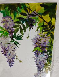 Vetro dipinto a mano, per porta interna, misure 75x166 cm spessore 4mm. Il vetro è trasparente con un leggero effetto ghiaccio. Per inserimento in una porta interna ma potrebbe essere messo sopra uno specchio o su pannello illuminato.