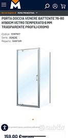 Nelle foto trovate tutte le info . Ho preso questo vetro doccia per un errore mio di misure. Ora non posso portalo indietro, perché sono passati i mesi e mi trovo questo scatolone enorme in casa che non so dove mettere , ovviamente sul prezzo si puo trattare . Ho anche un piatto doccia misure 120*80 bellissimo, se prende entrambi ovviamente il prezzo cambia di tanto