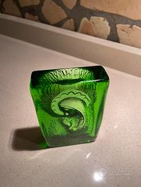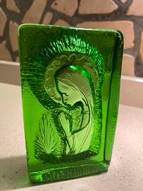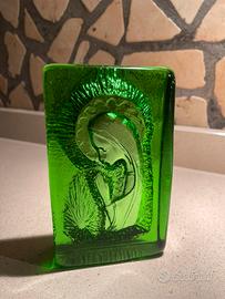 Oggetto in vetro verde raffigurante la Vergine Maria Madonna. Icona Fermacarte.