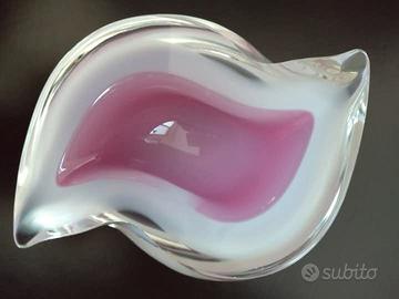 Un oggetto ormai raro e intramontabie ricercato dai collezionisti dai colori tenui e caldi . Ciotola realizzata con la tecnica del vetro sommerso a tre strati lavorata e rifinita a caldo dalla Vetreria Oball di Murano.