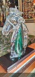 Scultura di Murano testa di cavallo vinta in premio ad un concorso europeo negli anni 2000 ma di fattura anni 70-80. Probabilmente è uno dei maestri di Murano e gli imprenditori sapranno a chi attribuirla Peso tra i 15 e i 20 kg alta 50 55 molto bella.