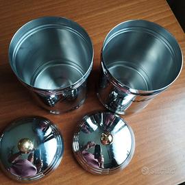 Vev Vigano vintage anni '80 made in Italy inox 18/10, porta caffè , e zucchero, altezza 13 cm. diametro 10 cm. nuovi mai usati, prezzo per la coppia ,spedizione compresa