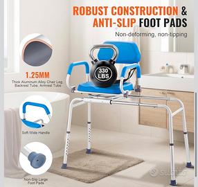 VEVOR Panca da Trasferimento per Vasca Scorrevole 150 kg Sedia da Doccia Scorrevole con Sedile Girevole a 360 Gradi, Bracciolo Girevole e Sedile Imbottito e Cintura di Sicurezza, per Anziani Disabili