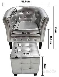poltrona cabriolet con poggiapiedi per un ambiente elegante in tutte le aree di casa dettagli trapuntati e borchiati e le braccia graziosamente ricurve, questa poltrona aggiungerà un tocco di lusso, classe e stile a qualsiasi interno sedile spesso imbottito è molto confortevole, mentre la struttura in legno è robusta e resistente. Il rivestimento in pelle artificiale di qualità è facile da pulire e resistente.