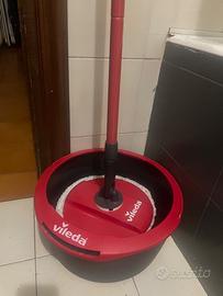 Vileda Spin & Clean, Lavapavimenti Con Sistema di Strizzatura Manuale attivabile attraverso il Manico, Set per la Pulizia dei Pavimenti con Secchio, Rullo pulente, Piastra, Panno 100% Microfibra