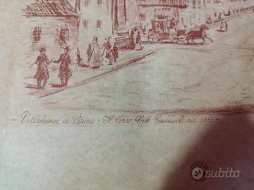 Il disegno cattura un momento storico della città, mostrando l'architettura e l'atmosfera dell'epoca.