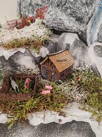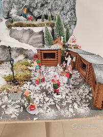 Vendo paesaggio natalizio 120x120 cm, realizzato con 1 abitazione, personaggi, pista di pattinaggio ghiaccio, alberi e luci LEMAX, originali. Il resto del paesaggio è stato realizzato a mano (inclusa la pista da sci) e con utilizzo stampati 3D a filamento e a resina per realizzare 1 abitazione, i mercatini di natale, fate, gnomi e abitazioni della parte di media montagna. Per altri dettagli contattatemi senza problemi. Non spedisco per dimensioni e fragilità. Possibilità di averlo così come lo vedete nelle foto o completamente smontato