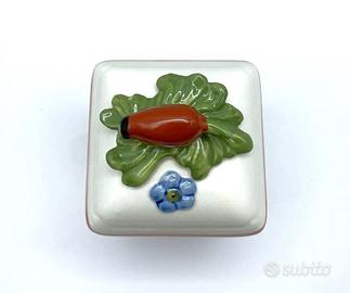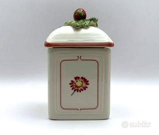 Scatola / Vasetto da Cucina Sala Taverna e Soggiorno SERIE: PETITE FLEUR CHARM (fuori produzione) MATERIALE: Vaso in Porcellana Premium lucida (adatta in Lavastoviglie) Coperchio con guarnizione in Gomma isolante DIMENSIONE: Altezza cm. 11,5 col Tappo - Base: cm. 6,6 x 6,5 COLORE: Bianco con profilo Rosa e Rosso MARCA: V&B VILLEROY & BOCH STATO: pari NUOVO (i riflessi più chiari o scuri, sono l'effetto del flash sul soprammobile )