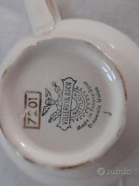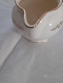 Lattiera o salsiera vintage Villeroy boch color avorio e disegni oro. Sbeccatura alla base, dietro il manico, come da foto.
