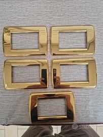 In vendita; 6 prese da 10A 2 pulsanti 5 supporti 5 placche metallo colore ORO