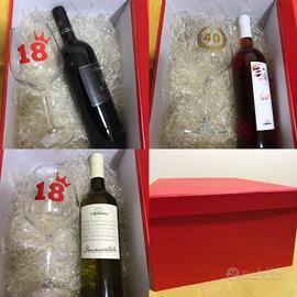Vendo in belle scatole o in cesti di vimini, confezioni di vino Aglianico + calici vino con stampigliatura anni 18- 40 -50 per festeggiare in modo elegante ed originale il compleanno. Un idea originale per una ricorrenza importante, un regalo per il papà, per un amico, per un giorno da ricordare. Confezioni a partire da € 35 compreso spese di spedizione in tutta Italia. Tel. 3200135813