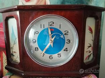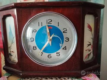 Orologio da tavolo degli anni 50/60, quando pochissimi oggetti riuscivano ad arrivare dalla Cina e fra porcellane e pregiati tessuti di seta, cominciò ad arrivare anche qualcosa di "tecnologico". Divertente un'extra lancetta con un piccolo aereo che ruota con i secondi. Sul quadrante, la scritta "made in China" conferma la sua provenienza.