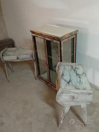 vetrinetta con sportelli e mensole in vetro e 2 comodini in legno con un cassetto e piano in vetro. Solo Catania città.