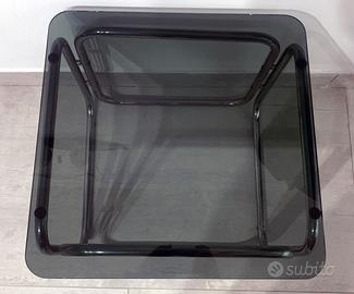 Vintage coffee table in vetro fumè e base cromata. Dimensioni: Base: 39cm x 42cm x 47cm Vetro: 48cm x 48cm - spessore vetro 7mm