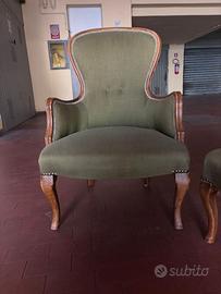 Vendo coppia di eleganti poltrone vintage in legno massello con gambe sagomate in stile Luigi XV.