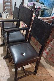 vendo 2 poltroncine vintage una poltrona 1 trono poltrona di pelle con 2 sedie in pelle con borchie di ottone il prezzo e trattabile e si possono vendere anche singolarmente se interessati