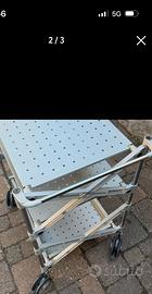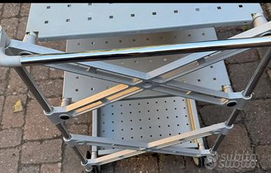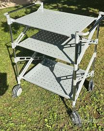 Carrello portavivande, arredo , design vintage della cartell . Modulabile secondo esigenze . Modesti Segni di uso e del tempo su cromo e ripiank ma rimane davvero bello e qui ad un prezzo eccezionale ( in giro si trovano da 250 a 600). Spedisco ( smontato o come concorderemo ) o consegno di persona .