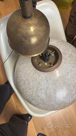 Lampadario a sospensione vintage con finiture in dorate in vetro credo opalino. Da accesa diffonde una bellissima luce. Il diametro è all’incirca 40 cm. CONSEGNA A MANO