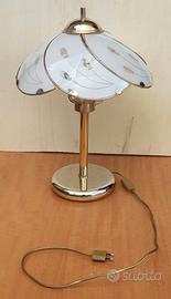 Vintage Modernariato Lampada da tavolo struttura in metallo e paralume con petali vetri opalina bianchi. Altezza 56 cm circa x diametro base 20 cm