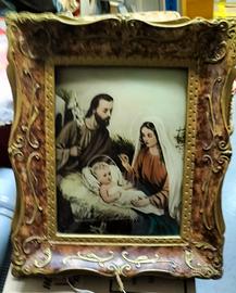 Vintage Quadro Capo letto illuminato " Sacra Famiglia" anni 30, come da foto