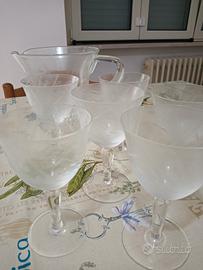 servizio da otto bicchieri acqua vino con brocca. intagliati anni 50 ottimo stato .