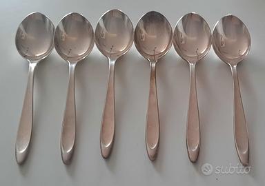 Bellissimo servizio VINTAGE di posate da 30 pezzi di provenienza austriaca disegnato negli anni '30 prodotto dalla Berndorf Austria. Posate placcate in argento di alta qualità. Per sei persone composto da 6 cucchiai, 6 coltelli, 6 forchette, 6 forchette dolce, 6 cucchiaini. Tutte le parti sono contrassegnate con il marchio del produttore di Berndorf Austria e il timbro degli anni '90 e con il logo dell'orso. Condizioni vintage molto belle con piccoli segni di usura.