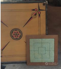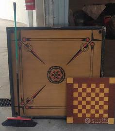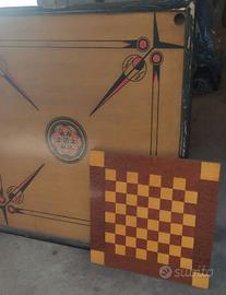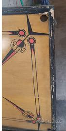 Tavolo vintage di legno per il gioco carrom, gambe funzionanti bordi rovinati da restaurare.
