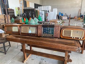 Vendo splendido lotto di arredo vintage variocomposto, ideale per allestimenti, locali, vetrine o ambienti in stile retrò e industriale. Il set include quattro radio vintage di grande fascino estetico, perfette come elementi decorativi d’arredo, cinquanta cassette della frutta già trattate e pronte all’uso, ideali per realizzazioni a parete, espositori per vino o soluzioni creative di design, quattro casse in spugna San Marco dal carattere originale e ricercato, tre cassette vintage in legno, quattro bauli contenitori vintage bellissimi e capienti, perfetti sia per arredo che per utilizzo pratico, e infine due carretti vintage che donano un tocco autentico e scenografico a qualsiasi ambiente. Materiale vario ma coerente nello stile, perfetto per chi desidera creare atmosfere uniche e di forte impatto visivo. 50 cassette della frutta 4 casse spugna San Marco 3 cassette in legno vintage 2 carretti in ferro e legno 4 bauli vintage