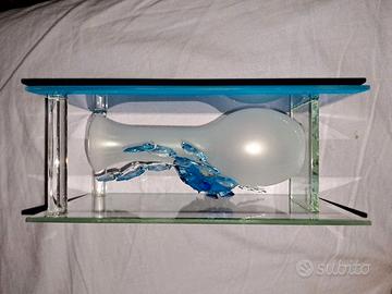 Vintage vaso vetro fiori azzurri Bellissimo vaso in vetro vintage Fiori azzurri Nuovo con scatola Altezza cm 20