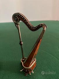 Violino con archetto e custodia e arpa in radica e argento, anche da regalo.