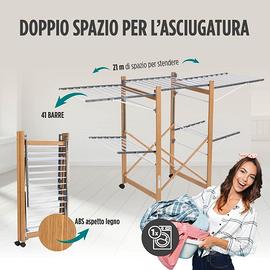 VITAPUR House Care XXL Clothes Airer with Wheels – 21 m – 21 m – Folding 12 cm Wood Effect – Mobile Indoor Outdoor Clothes Airer – 25 kg Load Capacity 136 x 69 cm Space-Saving