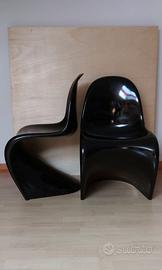 OTTIMO STATO. VITRA 4 RARE VERNER Panton Classic Chair S. Produzione Vitra in resina FIBERGLASS in nero lucido . Ottimo stato di conservazione. Segni minimi. Impercettibili. il prezzo del nuovo per una Panton Classic Chair S in FIBERGLASS laccata lucida è di 1640 euro. Alla Pagina dello shop VITRA.