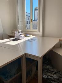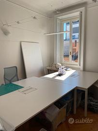Set composto da 2 scrivanie e 4 cassettiere Vitra di design, di altissima qualità. Le scrivanie sono bianche, dimensioni 180 x 160 cm. Le cassettiere coordinate completano perfettamente il set. Acquistate nuove per oltre 3.800€, sono state usate pochissimo e si presentano in condizioni eccellenti. Disponibili per visione di persona su appuntamento. Ritiro a carico dell’acquirente, non si effettua spedizione.