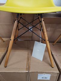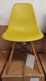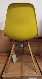 In vendita 4 sedie Eames Plastic Side Chair Re Dsw Originali di color senape, made in Italy.