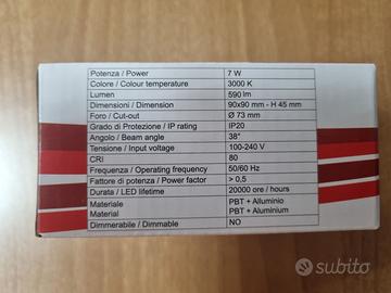 VIVIDA - Faretto LED, ad Incasso, Quadrato, 7W, 3000K (Luce Calda), 455Lm, IP20, Design Moderno, Colore Bianco. N° 6 pezzi al prezzo totale di 6 Euro
