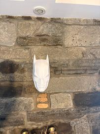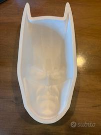 Volto di Batman alto 32 cm di colore bianco personalizzabile come meglio si vuole con dei semplici colori acrilici, sconsiglio il pennarello. Nel retro è presente un foro per essere appeso al muro con un chiodo.