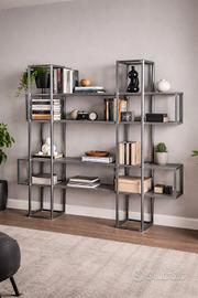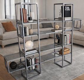Volumia e una libreria modulare e molto versatile questo esemplare e in ferro naturale misura cm 150x150/190 profondità 30 cm per info contattatemi,possibiltà di verniciatura a fuoco da conteggiare a parte