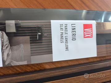 Pannelli in legno per parete decorativi, come da foto, della ditta VOX Linerio, quantità numero 5 doghe + 6terminali Copertura in mq: 2,65m x 1 m (ca)