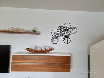 Rinnova il tuo ambiente con questa esclusiva installazione murale a nido d'ape. Un perfetto equilibrio tra la precisione geometrica dell'esagono e l'eleganza organica di un albero stilizzato.