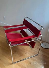 Poltrona NUOVA Wassily B3 di Knoll Studio, disegnate da Marcel L. Breuer in cuoio rosso, struttura in acciaio cromato Mannesmann. In vendita PER REALIZZARE UN PERFETTO ABMIENTE SALOTTO altre tre B3 in cuoio rosso. TUTTE NUOVE IN ECCELLENTI condizioni.
