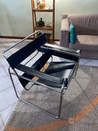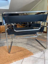Wassily Chair, sedia disegnata da Marcel Breuer per l’artista Wassily Kandinsky, nera produzione made in italy anni 70, difetto visibile in foto, non firmata.