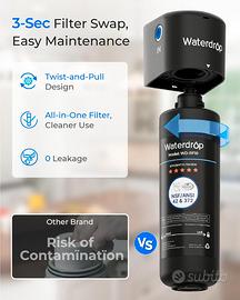 【Filtrazione multistadio innovativa】 Il sistema di filtrazione dell'acqua sottolavello Waterdrop Direct Connect utilizza un'innovativa filtrazione multistadio. E può ridurre efficacemente cloro, metalli pesanti, impurità chimiche, sedimenti e altre particelle di grandi dimensioni.[2]