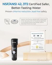 【Filtro certificato NSF】 I materiali premium appositamente selezionati sono privi di piombo, che è completamente certificato dalla IAPMO rispetto allo standard NSF 372.mantiene efficacemente il filtro igienico. Testato secondo gli standard NSF 42, riduce efficacemente il cloro, il sapore e l'odore. Il materiale privo di BPA e piombo garantisce un uso più affidabile dall'interno verso l'esterno.