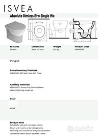 Coppia sanitari wc e bidet da appoggio. Bianco Lucido Marca ISVEA Modello: Absolute Rimless. Ottime condizioni. Già smontati, solo consegna a mano a Milano.