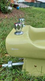 serie ceramica verde vintage lucida. WC con scarico a pavimento e bidet con accessori a muro.