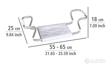 Sedile flessibile con ganci per i bordi della vasca, larghezza regolabile da cm.55 a cm.65 per tutte le vasche standard