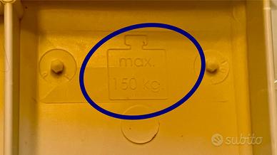 Comoda superficie di seduta in plastica cm.37 x 27 con capacità massima di peso 120kg.