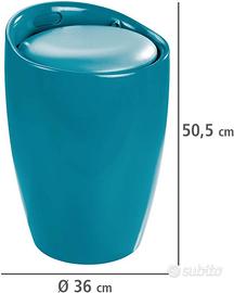Moderno sgabello da bagno rotondo In robusta plastica ABS di colore petrolio Seduta comoda e imbottita Con sacco biancheria estraibile, capienza 20 litri Sgabello: Plastica - ABS, Sacco: 100 % Poliestere