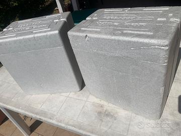 wine box è l'imballo professionale per le spedizioni e il trasporto di bottiglie che garantisce protezione da urti e sbalzi termici. E' realizzato in EPS in alta densità per questo fornisce eccezionale resistenza all'urto, leggereza e resistenza termica. La base di appoggio della bottiglia è progettata a forma radiale a spessore variabile al fine di ammortizzare gli urti più violenti Base e coperchio sono progettati per essere chiusi da nastro adesivo e/o da reggetta termosaldata consentendo al box di poter essere spedito così com'è. Dimensioni 365 x 250 mm H 370 Consegna a mano zona Ancona sud € 5 al pezzo