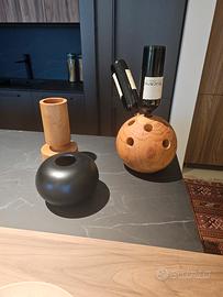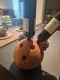 Portabottiglie modello Winebowl ricavato da un ceppo di cedro con 11 fori porta bottiglie bilanciato con un peso sul fondo. Dimensioni cm.25x25 circa